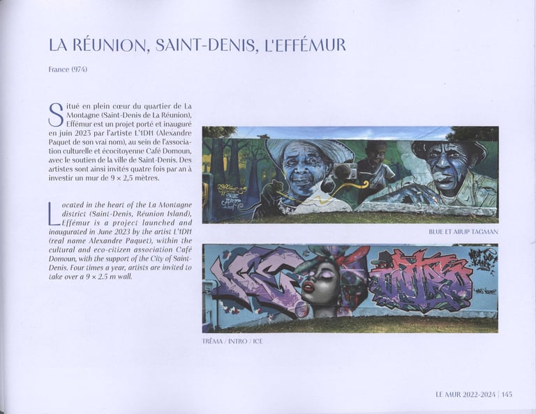 Effémur a été inauguré en juin 2023 par l’artiste L’1DI1, à l’occasion de l’ouverture du tiers-lieu culturel Café Domoun