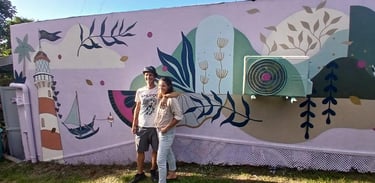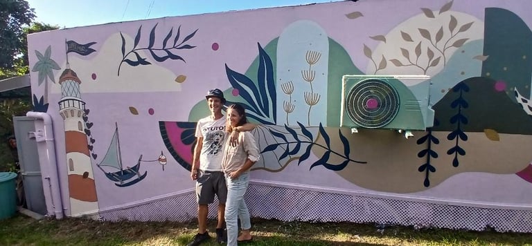 Miraje a grandi et vit à La Réunion depuis son enfance. Sa passion pour le dessin a toujours été son moteur. C’est entre l’Australie et la France métropolitaine qu’elle étudie les arts graphiques et s’affirme en tant qu’artiste peintre. De retour à La Réunion depuis 2017, Miraje travaille et développe son style artistique à travers différents projets (expositions, collaborations et fresques murales). Son travail se traduit par une recherche d’équilibre graphique et poétique qui intègre l’imaginaire à la végétation luxuriante, faisant honneur à la nature réunionnaise qui l’entoure. S’ajoutent souvent à ce langage onirique des symboles et des motifs du quotidien.